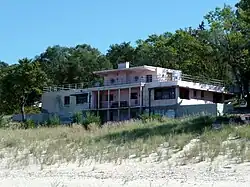 City West was one of several "ghost towns" situated in the dunes. Planned as a rival to Chicago,[6] it was partly built in 1837 but failed that summer, during a national economic panic. The remains of the town, partly carted off to be used as lumber, were located near where the pavilion in the state park now stands, until a forest fire in the 1850s destroyed whatever was left.[6] Today, most of the coastline has been settled for use as homes, factories, and businesses, with some areas reserved for public parks.