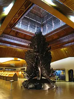 The intricate traditional wooden carving traditions, such as the ones belonging to the Jepara (Central Java), Bali, Toraja, and Asmat culture are on display on this floor. The centerpiece of this section is a large wooden carving of the Kalpataru tree, the tree of life. This eight meters high and four meters wide tree symbolizes nature and the universe and contains five basic elements; air, water, wind, earth, and fire.[1]