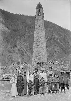 The construction craft was sometimes the work of almost entire family brotherhoods, a kind of "professional clan". Such recognized artisans, especially in the construction of military towers (vhov), included, e.g., the Barkinkhoev family from the villages of Upper, Middle and Lower Ozig (Ozdik).[30][31] Ingush masters were also known outside Ingushetia—in Chechnya, Ossetia and Georgia.[12][32][33]