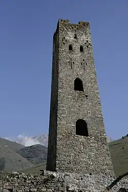Ingush towers (Ingush: гӀалгӀай гӀалаш/вӀовнаш, romanized: ghalghai ghālash/vhóvnash)[a] are medieval Ingush stone structures used as residences, signal posts, and fortifications. Most are found in the Sunzhensky and Dzheyrakhsky Districts of Ingushetia, North Caucasia.