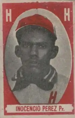 Inocencio Pérez (born 1870 - death date unknown) was a Cuban baseball pitcher in the Cuban League and Negro leagues. He played from 1904 to 1907 with several clubs, including Almendares club, Habana, the Cuban Stars (West), and the All Cubans.