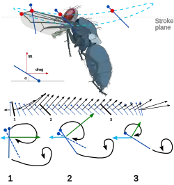 - ^ a b c d e f g h i j k Wang, Z. Jane (2005). "Dissecting Insect Flight" (PDF). Annual Review of Fluid Mechanics. 37 (1): 183–210. Bibcode:2005AnRFM..37..183W. doi:10.1146/annurev.fluid.36.050802.121940.