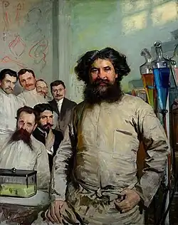 The intelligentsia is a status class composed of the university-educated people of a society who engage in the complex mental labours by which they critique, shape, and lead in the politics, policies, and culture of their society;[1] as such, the intelligentsia consists of scholars, academics, teachers, journalists, and literary writers.[2][3] Conceptually, the intelligentsia status class arose in the late 18th century, during the Partitions of Poland (1772–1795). Etymologically, the 19th-century Polish intellectual Bronisław Trentowski coined the term inteligencja (intellectuals) to identify and describe the university-educated and professionally active social stratum of the patriotic bourgeoisie; men and women whose intellectualism would provide moral and political leadership to Poland in opposing the cultural hegemony of the Russian Empire.[4]