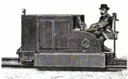 Benzene locomotives have an internal combustion engines that use benzene as fuel. There were a number of commercial manufacturers of Benzene locomotives operating in the 1890s and 1900s. Deutz produced a successful locomotive in the late 1890s, based on a prototype for a manganese mine in Giessen.[3] In the early 1900s, Oberursel of Frankfurt sold locomotives for mining and tunnelling operations.[4] They did not see widespread use after the 1900s, being superseded by petrol and diesel locomotives.