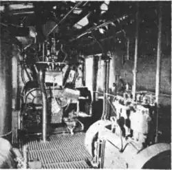 The interior of a Petrol-electric locomotive showing the engine and dynamo