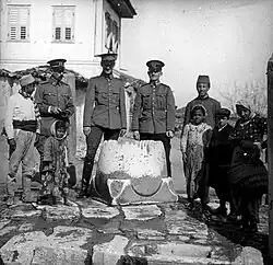 The first gendarmerie members arrived in Albania on 10 November 1913. They were soon faced with a peasant revolt. One International Gendarmerie officer was killed and many were imprisoned after the revolt erupted in June 1914. Dutch officers were gradually replaced by officers from Austria-Hungary and Germany, who arrived in Durrës on 4 July.[1] Soon, World War I broke out, and by 4 August most of the Dutch officers had returned to the Netherlands. By 19 September 1914 the last two imprisoned officers were released.