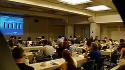The IMGS holds an annual meeting, the International Mouse Genome Conference (IMGC), that is attended by scientists from around the world. Prior to the formation of the society the mouse genetics community held a number of annual workshops, which the society adopted at the 4th workshop in Lunteren, Netherlands.[4] The location for the meeting has rotated between Europe, the USA, and Japan. Recent IMGCs have hosted satellite events, including student symposia, bioinformatic workshops and mentoring breakfasts.[7] In addition to the scientific program, the IMGC hosts the annual business meeting of the society, the annual secretariat meeting and often includes cultural or social events characteristic of host city or country.[5][7][10]