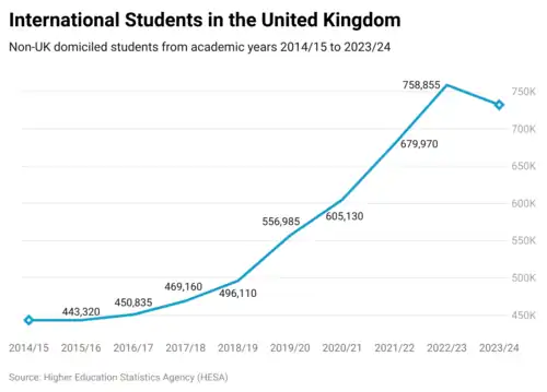 4. ^ "International students in UK higher education: FAQs". House of Commons Library. Retrieved 15 July 2022.