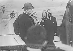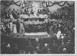 Prince Nicholas was still in Thessaloniki as military governor at the time of the inauguration,[51] and Prince Andrew and his wife, Alice of Battenberg, were en route to Thessaloniki with the Dowager Queen Olga.[N 3][52] However, Prince Christopher was likely present at his brother's inauguration, as he was in the capital at the time.[48] The same can be said of Princess Marie Bonaparte, who remained in Athens,[53] while her husband elected to proceed to Thessaloniki.