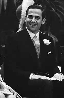 Constantine II had been serving as regent since February 20, 1964,[87] and ascended to the throne upon the death of his father, King Paul, on March 6, 1964.[88] Accompanied by his sister Irene, who was now the crown princess, and his cousin Prince Michael, who served as royal aide-de-camp, the new monarch arrived at the throne room of the palace at 7:30 PM to take the oath prescribed by the 1952 Constitution. Wearing a field marshal's uniform, Constantine II appeared visibly fatigued and emotional.[89][90]