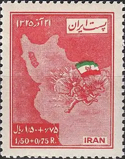![]() Iranian postage stamp commemorating the fourth anniversary of the liberation of Azerbaijan | |||||||