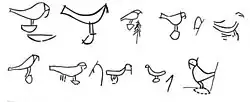- ^ Jochem Kahl: Das System der ägyptischen Hieroglyphenschrift in der 0.-3. Dynastie, pp.96–101.