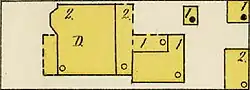 The footprint of the 1890 Isaac Heffron House as seen in the 1899 Sanborn fire insurance map of Galveston.