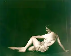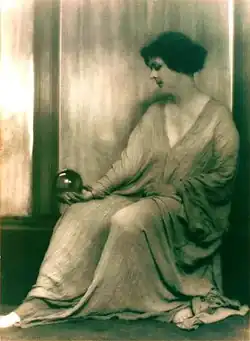 In 1910, Duncan met the occultist Aleister Crowley at a party, an episode recounted by Crowley in his Confessions.[21] He refers to Duncan as "Lavinia King", and used the same invented name for her in his 1929 novel Moonchild (written in 1917). Crowley wrote of Duncan that she "has this gift of gesture in a very high degree. Let the reader study her dancing, if possible in private than in public, and learn the superb 'unconsciousness' – which is magical consciousness – with which she suits the action to the melody."[22] Crowley was, in fact, more attracted to Duncan's bohemian companion Mary Dempsey (a.k.a. Mary D'Este or Desti), with whom he had an affair. Desti had come to Paris in 1901 where she soon met Duncan, and the two became inseparable. Desti, who also appeared in Moonchild (as "Lisa la Giuffria") and became a member of Crowley's occult order,[b] later wrote a memoir of her experiences with Duncan.[23]