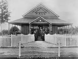 The Governor and Executive Council agreed to the petitioners' request and on 31 December 1886 the Isis Divisional Board was proclaimed. Meetings and elections were held in Howard at the Court House and board members from Childers rode on horseback to attend meetings once a month. The location of the Board's office was an issue of contention for a number of years and various propositions were presented for re-locating to Childers, Isistown or to a new building in Howard. In 1891, an offer of land in Childers was made to the Board and they subsequently made an application to the government for a loan of £250 to erect a new building. From 1891, the Isis Divisional Board met in the Land's Office, two rooms adjoining the Post and Telegraph Office in Childers. In 1903, the Isis Divisional Board was abolished by the Governor-in-Council and the Isis Shire Council was created. That same year, the Council moved to the Isis Shire Council Hall, a low-set timber building which had been constructed in Churchill Street on the site of the present swimming pool.[2]