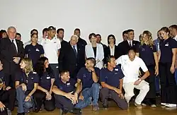 Prime Minister Ariel Sharon and Education Minister Limor Livnat in a group photo with the Israeli Delegation to the 2004 Olympic Games in Athens