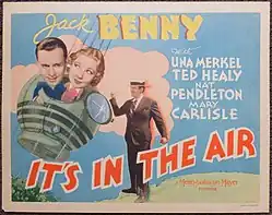 It's in the Air (aka Chiseling Chiselers, In the Bag and Let Freedom Ring) is a 1935 American comedy film directed by Charles Reisner and written by Byron Morgan and Lew Lipton.[1] The film stars Jack Benny in his final film for MGM, Ted Healy, Una Merkel, Nat Pendleton, Mary Carlisle and Grant Mitchell. It's in the Air was released on October 11, 1935, by Metro-Goldwyn-Mayer.[2]