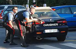 Carabinieri officers armed with a Beretta PM-12 submachine gun