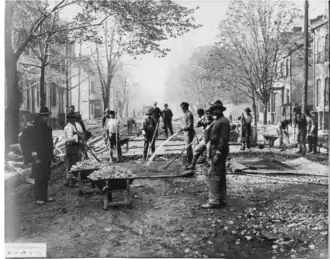 The rule that emigration from cities was negligible has an important exception, in Naples.[4] The city went from being the capital of its own kingdom in 1860 to being just another large city in Italy. The loss of bureaucratical jobs and the subsequently declining financial situation led to high unemployment in the area. In the early-1880s, epidemics of cholera also struck the city, causing many people to leave. The epidemics were the driving force behind the decision to rebuild entire sections of the city, an undertaking known as the "risanamento" (literally "making healthy again"), a pursuit that lasted until the start of World War I.