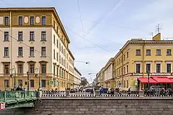 Between 1871 and 1902, the street was called Bolshaya Italyanskaya ('Big Italian'), while the modern Zhukovskogo Street was called Malaya Italyanskaya ('Small Italian').[2]