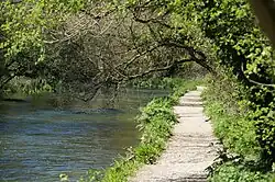 In 1911, a Mr Bowker from Shawford successfully applied for the towpath to be diverted, but this was overturned when Rev. J. H. Du Boulay appealed against the decision. The diversion was sanctioned in 1914, although there have been doubts about the legality of the action, and subsequently two further diversions were made, at Chickenhall, near the southern end and at Hockley, near the northern end. No maintenance was carried out on the waterway until the formation of catchment boards.[17] Thus responsibility for the waterway as a drainage channel passed to the Hampshire Catchment Board in 1942, and some work was carried out to maintain the integrity of the waterway. These responsibilities later passed to the Southern Water Authority, and now reside with the Environment Agency.[18]
