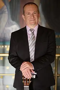 József Eötvös (born 1962, Pécs) is a classical guitarist, from Pécs, Hungary.[1] Eötvös studied with Roland Zimmer and Franz Just at the Hochschule für Musik "Franz Liszt", Weimar. He won several international competitions between 1985 and 1988. He has since toured extensively through Europe, including concerts in Austria, Bohemia, Germany, Greece, Lithuania, Romania, Sweden, and Slovakia. Eötvös is credited with the transcription and first ever recording of the Goldberg Variations in the original key, previously considered a most daunting cross-over from Bach's keyboard works.