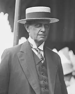 Harriman retired the next month, at age 48, from Harriman & Co.[14][15] Later that year, newly elected President Woodrow Wilson appointed Mrs. Harriman as a member of the first U.S. Commission on Industrial Relations. After President Wilson's appointment, the couple moved to Washington D.C., keeping a residence in New York City while donating their Mount Kisco, New York estate for use as a tuberculosis sanitorium.[1] In early 1914, he lent his yacht, the SS Mohican, to German prince Wilhelm Friedrich Heinrich, who had been chosen by other European monarchs to rule as William, Prince of Albania.[16]