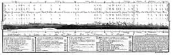 During his time at Aarburg Castle he published many meteorological papers[7] and created a cartographical drawing of the Alps as viewed from the castle. Without any modern equipment, such as a theodolite or telescope he instead used an eight-meter long gutter pipe, filled with water to measure levels and a small rod held in front of it, he could measure the heights of the peaks. He then used the Scheuchzer map of 1712 to calculate the distances away, and drew the first scientific panorama of the Alps.[9]