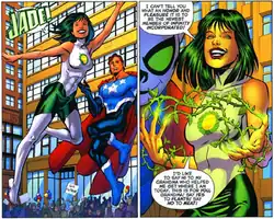 Jade (Jennifer-Lynn Hayden) is a superhero appearing in American comic books published by DC Comics. She first appeared in All-Star Squadron #25 in September 1983, created by Roy Thomas and Jerry Ordway.[1] Since the character's creation, she has appeared as a reoccurring member in both Green Lantern and Justice Society of America titles.