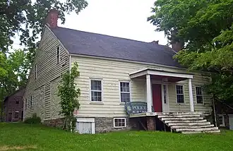 There are several contributing resources to the rear of the house. A two-story wooden barn is believed to date to 1880, and the remains of a stone smokehouse and another unidentified structure are nearby. The pattern of their stonework is similar to the lean-to on the east elevation, suggesting all three were built around the same time in the early 19th century. An old well and stone walls complete the original farmstead property.[1]