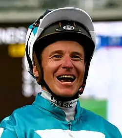 James McDonald (born 6 January 1992) is a New Zealand thoroughbred racing jockey and member of the New Zealand Racing Hall of Fame. On 2 November 2021, McDonald rode the winning horse Verry Elleegant in the 2021 Melbourne Cup.[1] He has been awarded the World Jockey of the Year in 2021 and 2024 in the TRC Global Rankings.[2]