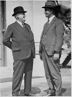 On 17 May 1919, Premier Hal Colebatch resigned and Mitchell succeeded to the position. Mitchell won the 1921 election and remained premier until 1924. During this period he garnered much publicity for his strong support for the soldier settlement scheme in the south-west of Western Australia. As a result of his enthusiastic promotion of this scheme (which ultimately proved very costly in terms of money and resources) he was dubbed "Moo-Cow" Mitchell by the local press.[3] Nonetheless, the establishment of a dairy industry in Western Australia can be largely credited to him. He also proved adept at dealing with the divisions between the Nationalist Party and the Country Party.
