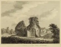 A stone cross over a small gate (constructed by Murtagh O'Dowd, local blacksmith), outside the old town gate, leads to the remains of a Franciscan friary of the Friars Minor. The Franciscan friary of the Friars Minor was not founded until the occupation of Jamestown in 1642 by the O'Rourke Clan. A synod held here in 1650 repudiated The 1st Marquess of Ormonde, the former Lord Lieutenant of Ireland, and excommunicated his followers. In 1713, an elderly Father Connor Reynolds "of Jamestown in the county of Leitrim" exiled in Spain since 1681, was captured hiding in a trunk on a fishing boat arriving at Dungarvan port and imprisoned at Waterford gaol.[3] The surnames Butler and Clyne are particularly numerous in the Jamestown area.