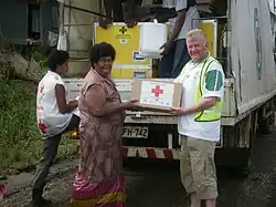 The different sanitation needs of women and girls can go overlooked during natural disasters. The Fiji Red Cross Society provided 'dignity kits' to support the menstrual hygiene of women and girls during the flooding event and aftermath.[35]