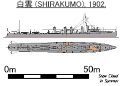 Shirakumo (白雲, "White Cloud") was the lead ship of two Shirakumo-class destroyers built for the Imperial Japanese Navy in the early 1900s. During the Russo-Japanese War (1904–1905), she took part in the Battle of Port Arthur in February 1904, the Battle of the Yellow Sea in August 1904, and the Battle of Tsushima in May 1905. During World War I (1914–1918), she participated in the Battle of Tsingtao in 1914.