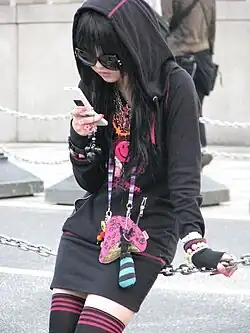 A girl in the Harajuku district of Tokyo with a phone in 2008