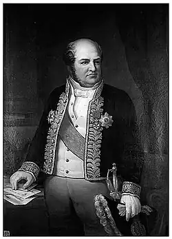 On 15 April 1837 Lacave-Laplagne was asked to take the Finance portfolio in the second ministry of Louis-Mathieu Molé.[3] He was reelected on 20 May 1837, and again on 4 November 1837 and 2 March 1939. As minister he had to defend all the draft financial laws of the government, including laws on pension conversion, slavery, forest clearance, railways, the budget and taxes.[2] On 22 January 1839 the cabinet ministers resigned due to lack of support in the chamber. On 2 February 1839 the chamber of deputies was dissolved. Elections were held on 2 March 1839, but the new chamber would not support the government. The ministry was finally dismissed on 8 March 1839.[4] Lacave-Laplagne returned to his seat in the Chamber with the conservative majority, and continued to participate in all discussions about public works and finance.[2]