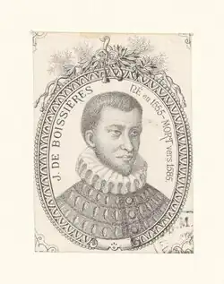 Born at Clermont-Ferrand in 1555, Jean de Boyssières became a jurist. He dedicated most of his work to Francis, Duke of Anjou and Alençon.[1]