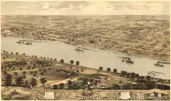 Jefferson City, informally Jeff City,[1] is the capital of the U.S. state of Missouri. It had a population of 43,228 at the 2020 United States census,[8] ranking as the 16th most populous city in the state, but the 9th least populous U.S. state capital.[9] It is also the county seat of Cole County and the principal city of the Jefferson City Metropolitan Statistical Area, the second-most-populous metropolitan area in Mid-Missouri and the fifth-most populous in the state. It forms part of the nine-county Columbia–Jefferson City–Moberly combined statistical area, which has 415,747 residents. Most of the city is located within Cole County, with a small northern section extending into adjacent Callaway County.