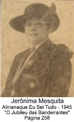 Jerônima Mesquita (30 April 1880 – 1972) was a Brazilian feminist. She is regarded as the pioneer of the women's movement in Brazil and co-founded the Federação Brasileira pelo Progresso Feminino with Berta Lutz and Stela Guerra Duval in 1922.[1][2]
