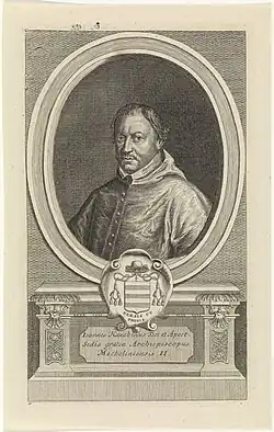 On 30 October 1583 he was consecrated archbishop of Mechelen at Tournai (Mechelen itself then being in rebel hands). He entered his see in 1585. On 8 November 1585, the remnants of the relics of St Rumbold of Mechelen, saved from the desecration of the cathedral during the period of Calvinist rule, were solemnly deposited in the saint's tomb in the cathedral.[1]