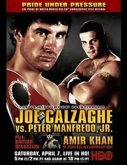 Joe Calzaghe vs. Peter Manfredo Jr., billed as Pride Under Pressure, was a professional boxing match contested on 7 April 2007, for the WBO and The Ring super middleweight championship.[1] The bout took place at Millennium Stadium, with Calzaghe winning by technical knockout in the third round.