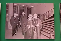 He was professor of Fundamental Theology at the University of Münster from 1963 to 1993,[7] where he developed a Theology after Auschwitz (Holocaust theology).[2] He introduced philosophical and political ideas of 1968, by Ernst Bloch and the Frankfurt School of Max Horkheimer and Theodor W. Adorno, in theology, which was received with opposition. His concepts were applied by the liberation theology in Latin America.[1] He participated in the founding of the University of Bielefeld, and was a leading member of the international Paulus-Gesellschaft dedicated to a dialogue of Christianity and Marxism. After the Second Vatican Council, he was a consultant of the papal secretariate for the noncredentibus from 1968 to 1973.[4] Metz was a consultant of the Würzburg Synod of the German dioceses from 1971 to 1975, and was the principal author of its document "Unsere Hoffnung" (Our hope) which became a key document for the reception of the Second Vatican Council in Germany.[2][3]