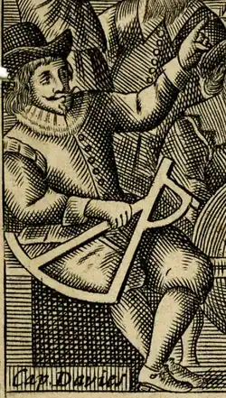 On 29 September 1582, Davis married Mistress Faith Fulford, daughter of Sir John Fulford (the High Sheriff of Devon) and Lady Dorothy Bourchier who was daughter of John Bourchier, 1st Earl of Bath.[15][16] They had four sons and a daughter.[17] On his return from the 1592 voyage, Davis discovered his wife had taken up with a "sleek paramour";[18] conspiring with this man, a counterfeiter, Faith "brought false and unavailing charges" against Davis.[19]
