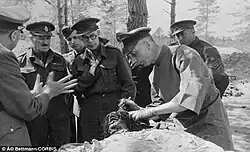 Van Vliet Jr (third from left in garrison hat) viewing an autopsy in the Katyn Forest