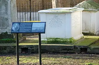 Hunter's tomb in the graveyard of the Church of St John-at-Hackney in London