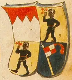 Coat of arms of the House of Grumbach according to the Scheibler Coat of Arms book. John III continued it in a multiple coat of arms.