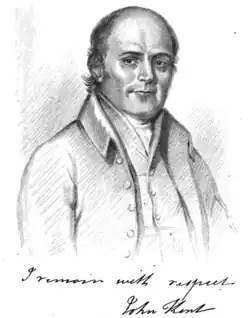 Kent was born of poor, religious parents in Devonshire, and was apprenticed to his father, a shipwright.[1] He began to write verse in his youth, and worked hard to educate himself despite limited opportunities.[2] His hymns are first known to have been published in 1799 in Samuel Reece's A Selection of Evangelical Hymns,[3] compiled for the Barrack-Street Baptist congregation near Plymouth Dockyard, where he and his father worked.[2] The first collection composed entirely of John Kent's hymns was his Original Gospel Hymns, published in 1803; though he gained a reputation as a hymnist, he continued as a shipbuilder, writing hymns as his work allowed.[2] His collection passed through ten editions between 1803 and 1861, being expanded with new material as it became available.[3] Kent became blind by 60 years of age, and mostly ceased authoring new hymns until his death seventeen years later in 1843.[2] His last words were "I am accepted."[4]
