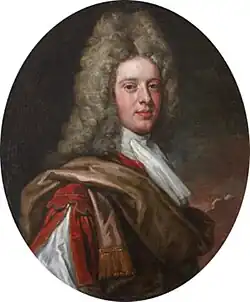 John Lauder was baptised on 27 July 1683 at Edinburgh, a son of Colin Lauder (1659-1690), a Burgess of Edinburgh,[2] and Elizabeth née St.Clair, of the Herdmanston family[1]. Lauder's father Colin was an Edinburgh merchant and his grandfather was Sir John Lauder, 1st Baronet, of Fountainhall. On the 13 June 1691, John, William and David Lauder, children of the deceased Colin Lauder, were confirmed executors-dative to him.[3] He married Isabella (b.1683)[4] daughter of Edinburgh surgeon George Preston,[5] and grand-daughter of Robert Preston who had obtained a charter of the lands of Preston, Midlothian on 20 August 1633; he was knighted, and admitted a Lord of Session on 4 March 1672, when he took the title of Lord Preston. He died in October 1674.[5]