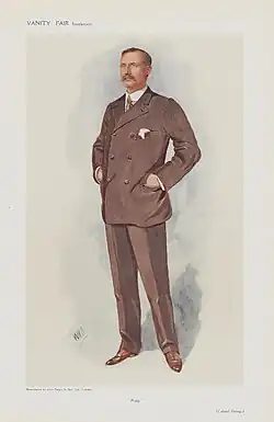 ![]() Col. John Denny caricatured by "WHO" in Vanity Fair, 1910 | |